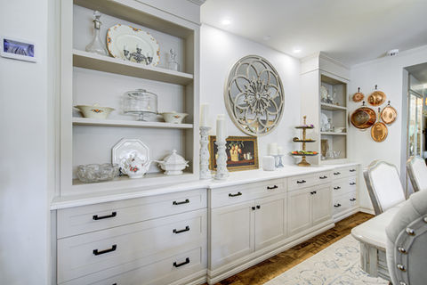 Salle -à-manger élégante avec ses meubles intégrés en merisier laqué.